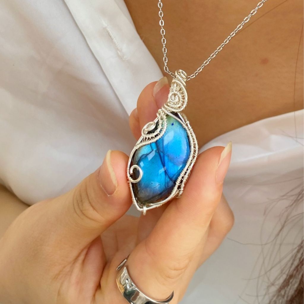 Meet your new energy companion—our Handcrafted Labradorite Crystal Necklace. Meticulously wrapped by skilled artisans using sacred copper wire, each necklace is uniquely designed to help you: